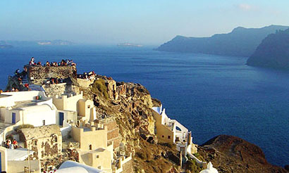 Nowadays the site of the Kasteli in Oia is a favourite spot for sunset watching. |