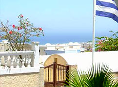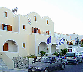 the main taxi rank, bus terminal, local banks, supermarkets, Santorini