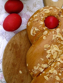 | Tsoureki Easter Bread with Dyed Easter Eggs : A Recipe |